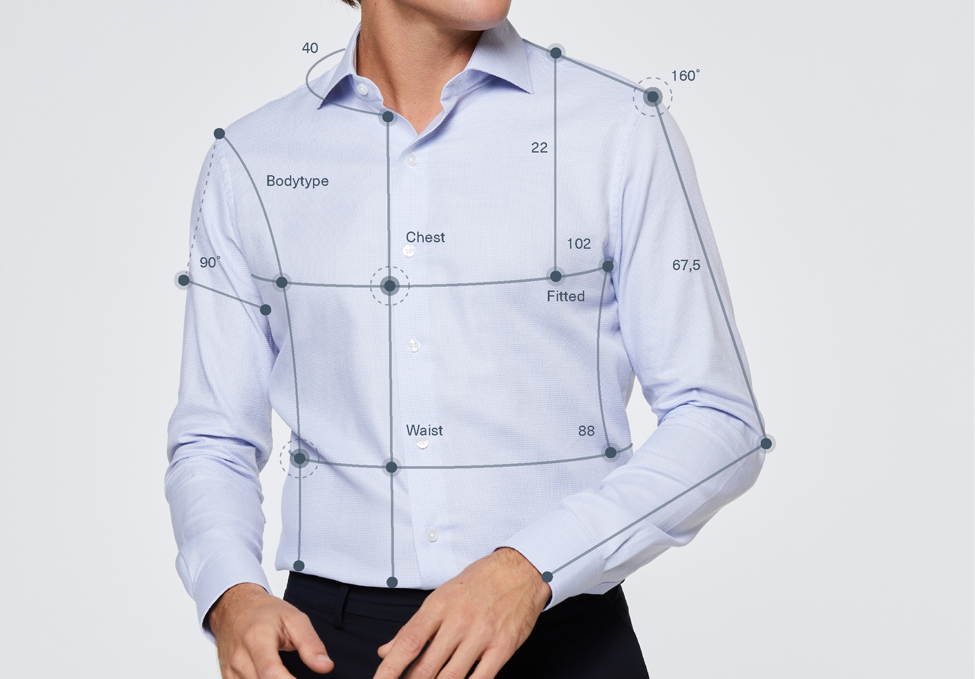 Your perfect shirt starts with determining 9 body measurements. We have 2 different ways to do this. All two with the same goal: your perfect fit. Which one do you prefer?