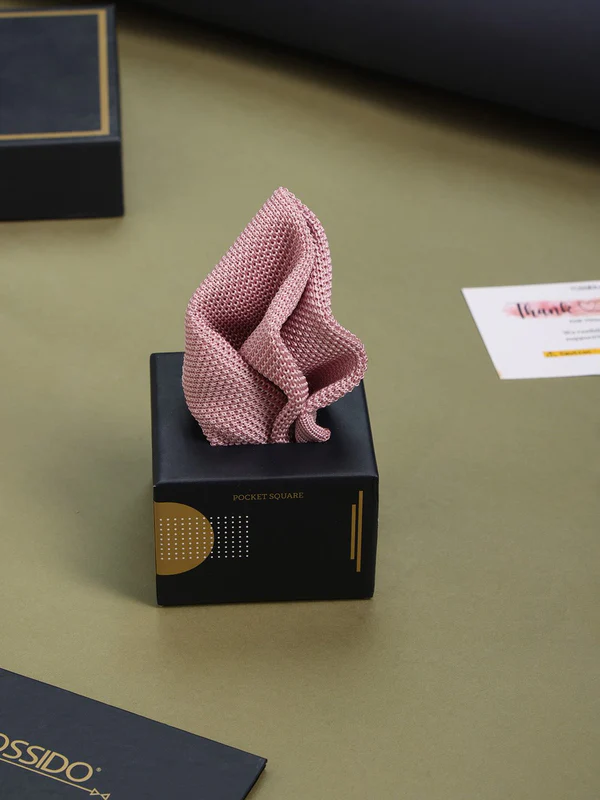 Elevate your look with the timeless elegance of the Pink Solid Knitted Pocket Square. Its subtle pink hue and unique knitted texture make it the perfect accessory for any formal or celebratory occasion, adding a refined and sophisticated touch to your attire.