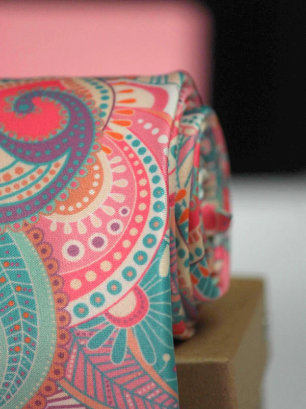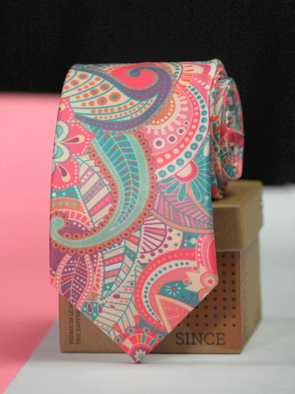 Our Pink Paisley Tie is for the man who wants to show off some pattern while still keep things subtle. Intricate blue, orange, and violet designs are simply set over a pink background to reinvigorate your closet!
